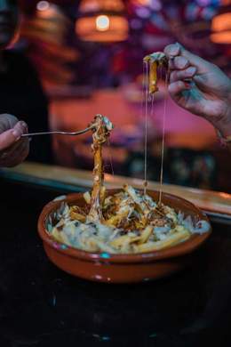 PATATAS FRITAS CON MOZARELLA Y CARNE AL PASTOR