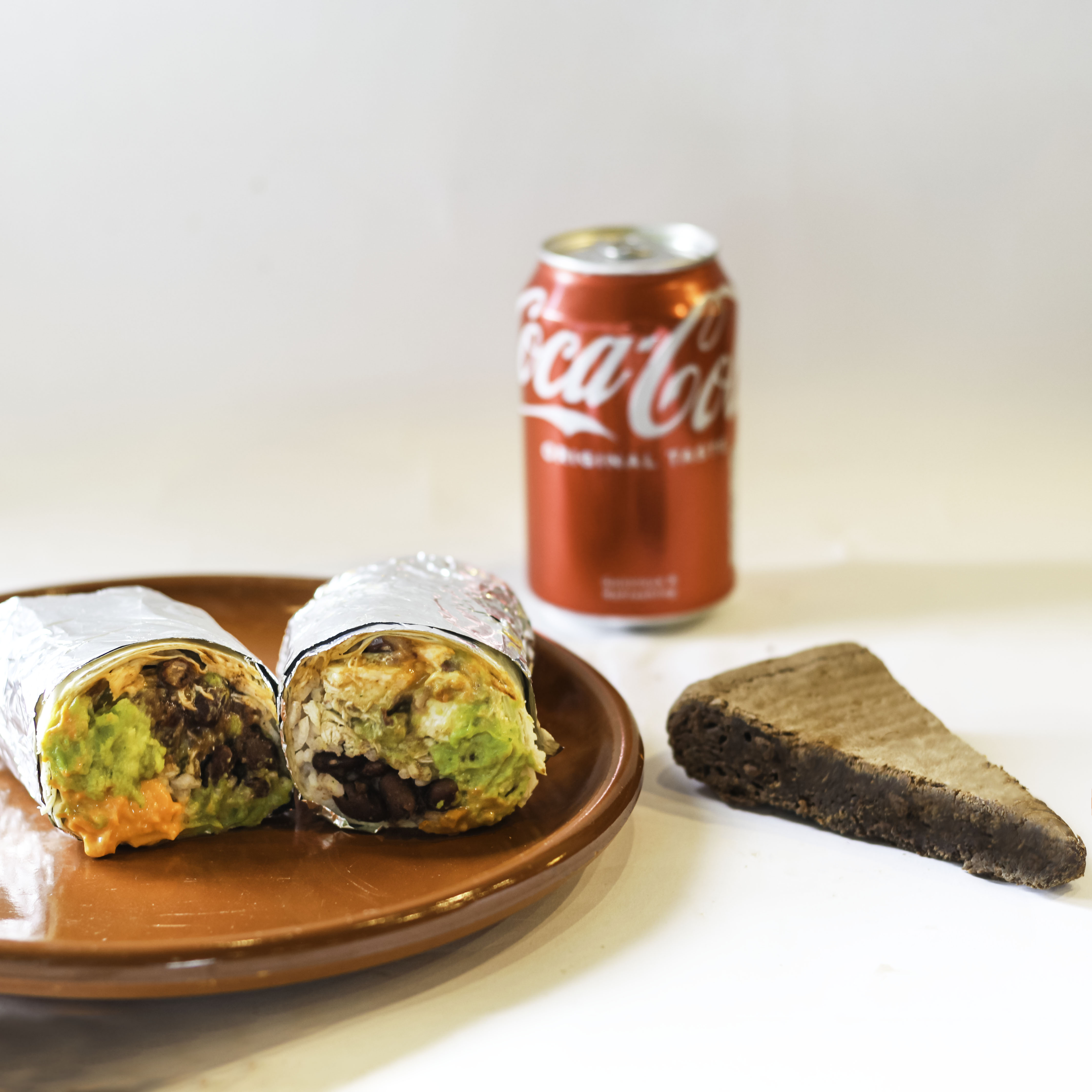 Una elección sabrosa para disfrutar: 1 burrito a tu gusto (clásico de pollo, picantón de ternera o veggie), acompañado de 1 bebida refrescante y un postre irresistible (brownie o cookie). Perfecto para saciar el antojo con el combo ideal.