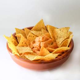 Crujientes totopos de maíz cubiertos de abundante queso cheddar fundido. ¡Un clásico irresistible!
