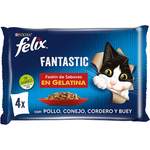FELIX FANTASTIC COMIDA HÚMEDA DE GATO CON POLLO, CONEJO, CORDERO Y BUEY PACK 4 BOLSITAS DE 85 G