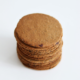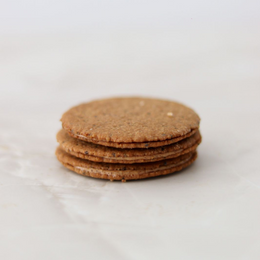 Galleta hecha a base de harina de avena y arroz, con semillas de chía y miel de maple, rellena de crema de almendra y canela
