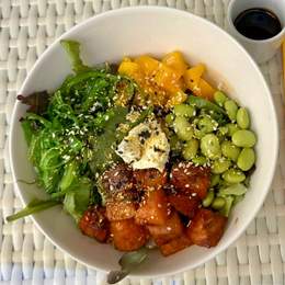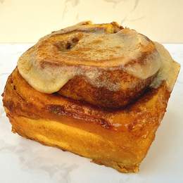 Hecho a base de masa madre, con canela, aceite de coco y topping a base de crema de anacardo hecha en casa