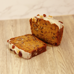 Hecho a base de harina sin gluten, zanahoria y topping vegano hecho en casa.