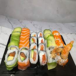 4 Maki salmón y queso, 4 maki salmón y aguacate y 4 salmón roll