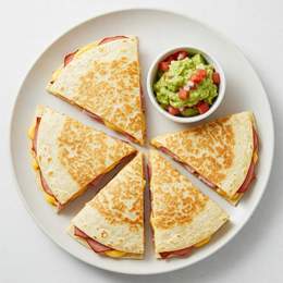Jamón york y queso fundido con tortillas de harina y guacamole. Ideal para los niños y los menos aventureros.