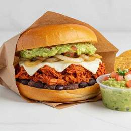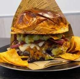 Pan brioche 100g potato roll, frijoles refritos, carne de cerdo estilo pibil (receta ganadora euskadi) queso mozzarella, cebolla encurtida, guacamole, nachos crujientes y nuestra ya famosa salsa de mango y habanero.Campeonato de España!!