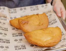 Empanadas fritas de masa leudada rellena con mozzarella y jamón York