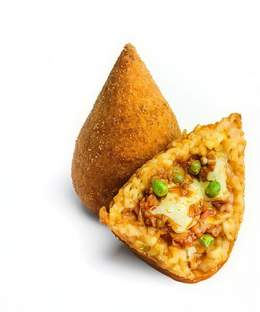Conos de arroz empanados y fritos procedentes de la cocina siciliana rellenos con su propio queso mozzarella