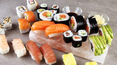 Salmón, arroz y alga nori.