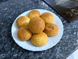 Arepa rrellena con un generoso revuelto de huevo fresco mezclado con tomate,cebolla y pimientos