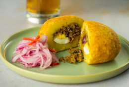 Relleno carne de ternera,platano maduro,caraotas,queso rayado