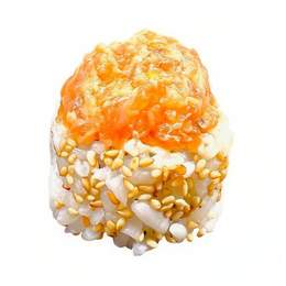 Roll de tempura de langostino con lechuga, mayonesa y tobiko