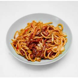 Yakiudon grueso con ternera