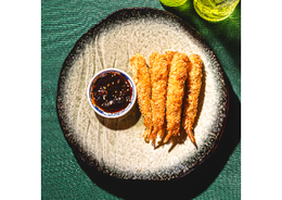 De contramuslo de pollo deshuesado, acompañado de salsa de limón con polvo 7 especias.