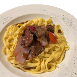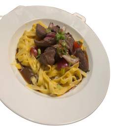 Tagliatelle saltado criollo de ternera