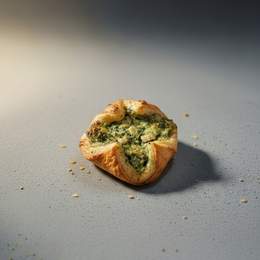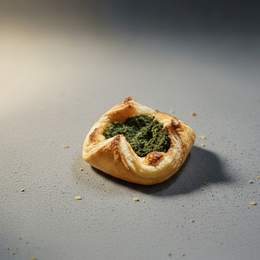 Mini pastel de hojaldre con espinacas, pimiento rojo y ricotta.