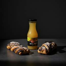 Dos trenzas de chocolate y avena con un zumo a tu elección o café