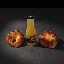 Dos Crossant de toda la vida con un zumo a tu gusto o café latte