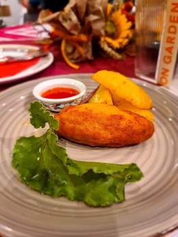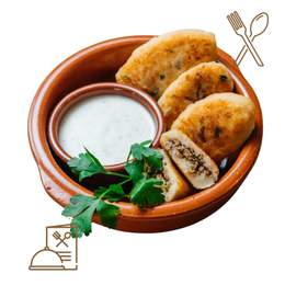 КАРТОПЛЯНІ ЗРАЗИ З ЯЛОВИЧИМ ФАРШЕМ CROQUETAS DE PATATA CON CARNE DE TERNERA carne de ternera picada, puré de patatas, huevo, harina 3 unidades