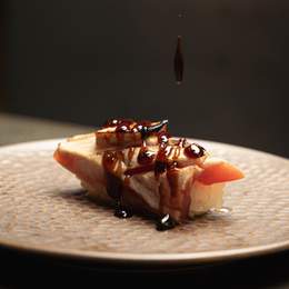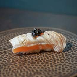 Raspa de ventresca, anguila ahumada, nabo, huevas de salmón, cebollino y salsa ponzu
