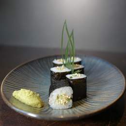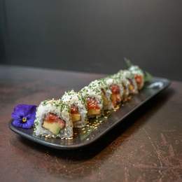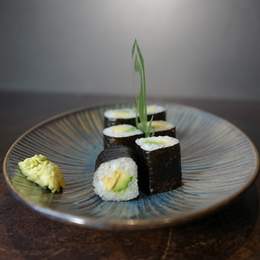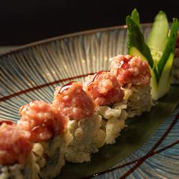 Hosomaki de aguacate tempurizado con tartar de atún semi picante