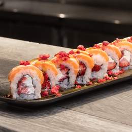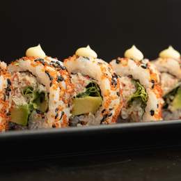 Cangrejo, aguacate, tobiko, mayonesa y cebolla japonesa