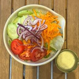 lechuga, remolacha, tomate, zanahoria, cebolla roja y nuestra rica vinagreta