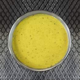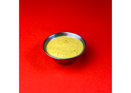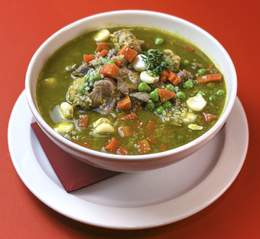 Sopa de menudencia de pollo a base de cilantro, arroz, guisantes, pimiento rojo y especies peruanas.