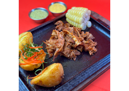 Librillo de ternera a la parrilla + patatas cocidas + choclo.