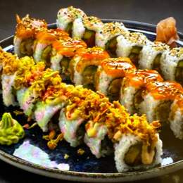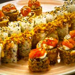 Maki frito salmón, crunchy salmón roll, chiken roll