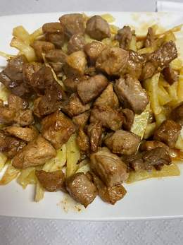 Raxo y patatas fritas