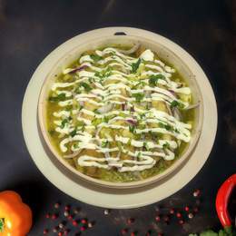 Tres tortillas de maíz rellenas de pechuga de pollo desmenuzada y cubierta con una salsa de tomatillo verde y jalapeño (salsa verde), crema agria, cebolla y cilantro. Ligeramente picante y con un sabor intenso.