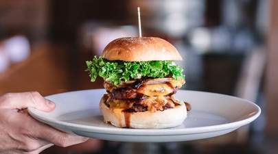 Doble de ternera con queso cheddar, bacon crujiente, nuestra salsa barbacoa, jalapeños, cebolla a la plancha, allioli, tomate, lechuga, pan de brioche