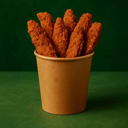 Solomillo de pollo con un rebozado crujiente y una pizca de pimienta.