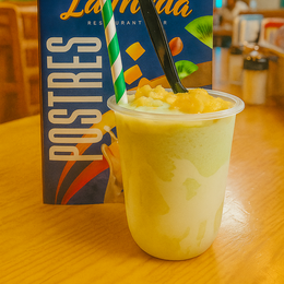Granizado con mango,maracuyá, lulo y piña con leche condensada