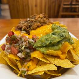 Servidos con queso cheddar fundido, pulled pork, pico de gallo y guacamole casero