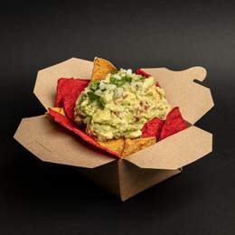 Mix de triángulos fritos de maíz, acompañados de nuestro guacamole rústico y un toque de YoYo-Salsa