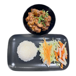 Plato vietnamita de costillas tiernas, bañadas en una salsa agridulce, equilibrada y llena de sabor. Servido con arroz blanco