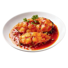 Mariscos salteados (gambas, calamar, mejillones) en salsa agridulce, servidos con arroz blanco y verduras frescas. Un plato equilibrado y lleno de sabor del mar