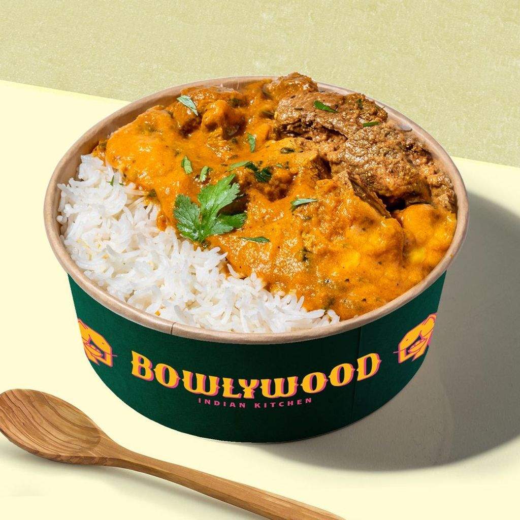 Nuestro bol más suave: deliciosos trozos de pollo dorados, guisados en una salsa cremosa made in Delhi, con una base de arroz.