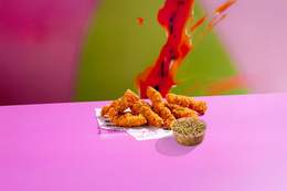 6 Tiras de pollo crujiente y un topping a elegir