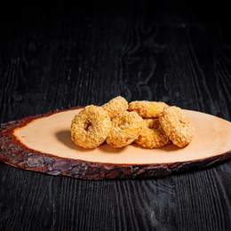 Aros crujientes rellenos de queso fundido y bacon, la combinación perfecta de sabor y textura.