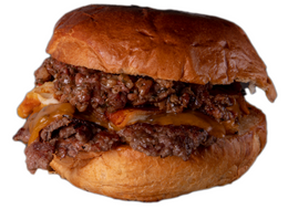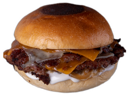 Smash Burger con pan juanito Baker, carne de falda de vaca madurada, queso edam y cheddar, cebolla, salsa Bites con patatas fritas incluidas