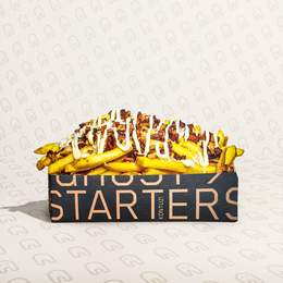 Next level de papas XXL: nuestras kruntxi fries espolvoreadas con un increíble queso parmesano italiano, crujiente bacon picado y horneado con cebollino fresco. Bañadas en nuestra mayo de trufa negra
