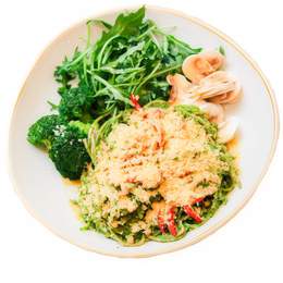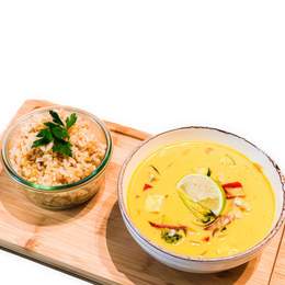 Granola casera de proteina de sabor chocolate y cacahuete. Hecha con avena sin gluten, soja texturizada, proteina de guisante, cacahuetes, dátiles, plátano, almendras, chips de chocolate 100%, pasas y coco. Sin azúcares añadidos. Paquete de 300g.