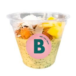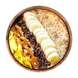 TOPPINGS: Nueces, láminas de coco, cacao nibs bio y plátano