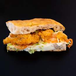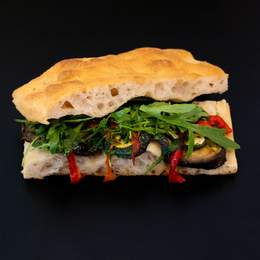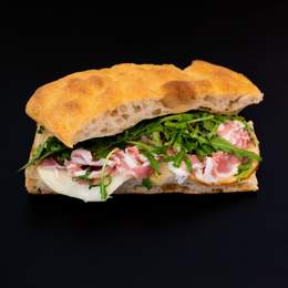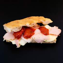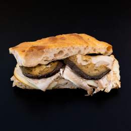 Porchetta, berenjenas en aceite de oliva, provola y naranja