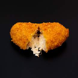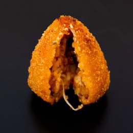 Arroz, ragout de ternera, guisantes, provola y parmesano