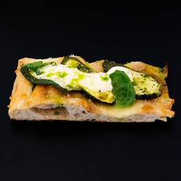 Calabacín, Burrata, Parmesano, Mozzarella & Piel de limón caramelizada