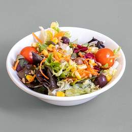 Una mezcla de lechugas con maíz, aceitunas, pipas de calabaza, pipas de girasol, zanahoria rallada y tomate cherry